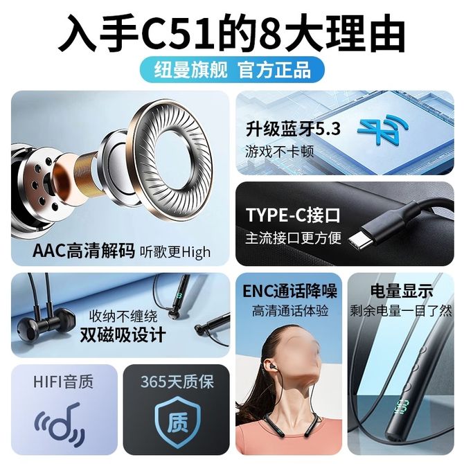 纽曼(Newmine) 大动圈蓝牙运动耳机 颈挂线控通话降噪磁吸耳麦C51 LED数显音乐无线耳塞 14mm大动圈,HiFi音质,颈挂佩戴舒适,通话降噪,电量数显,蓝牙5.4,IPX5防水防汗,磁吸收纳,持久续航 兑换价格 4200 里程 会员卡别 终身白金卡 白金卡 金卡 银卡 普通卡 儿童卡 服务 由 智科精品 发货并提供售后 颜色: 黑色 购买数量: 件 库存件 配送地址: 立即购买 加入购物车 成功添加到购物车 关闭 购物车共有 种商品 总金额为: