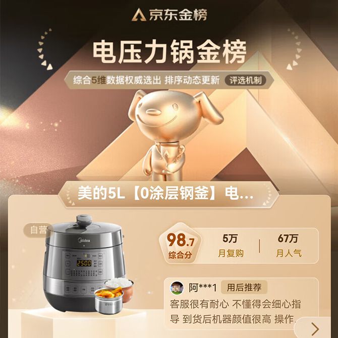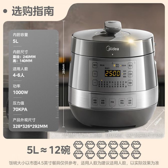 组合销售 产品介绍 产品规格 售后服务 产品咨询 发现好货 苏泊尔(SUPOR)电压力锅 6升大容量 智能触控 球釜双胆 开盖收汁 一键排压 SY-60YC8001Q 高压锅 16900 里程 美的/Midea 电压力锅家用5L大容量多功能高压锅双胆一键收汁智能预约不粘电高压锅电饭锅煮粥煲汤锅 一锅双胆【一键收汁入味】 YL50M1-702 10600 里程 苏泊尔(SUPOR) 5L电压力锅家用电高压锅双胆高压电饭锅煮饭智能预约 SY-50YC8186 11300 里程 美的/Midea 电压力锅 【一锅双胆】5L全自动家用智能预约 上蒸下煮 不粘双胆煲汤炖肉 YL50Q3-451 10900 里程 美的/Midea 电压力锅 高压锅家用电压力煲智能预约电饭煲大容量多功能定时预约电饭煲3-8人单胆旋钮款4L MY-E4809 8700 里程