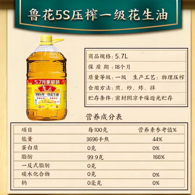 鲁花 5S压榨一级花生油 物理压榨特香纯正家庭实惠装 5.7L 鲁花精选优质大花生 颗粒饱满、香味浓郁 新老包装随机发货 兑换价格 10800 里程 会员卡别 终身白金卡 白金卡 金卡 银卡 普通卡 儿童卡 服务 由 深圳市猎机网网络科技有限公司 发货并提供售后 油品规格: 5.7L 购买数量: 件 库存件 配送地址: 立即购买 加入购物车 成功添加到购物车 关闭 购物车共有 种商品 总金额为: 组合销售 产品介绍 产品规格 售后服务 产品咨询 发现好货 长寿花 金胚玉米油食用油非转基因压榨一级 1.8L 2200 里程 珍佰粮菜籽油5L 5500 里程 福临门 一级大豆油900ML/瓶 优质家用食用油 1100 里程 福临门 家香味食用油 沂蒙土榨 花生仁油900ml 1600 里程 金龙鱼 浓香花生油5L 大桶装物理压榨一级厨房烹饪炒菜植物油粮油家庭食用油 浓香花生油食用油 5000 里程