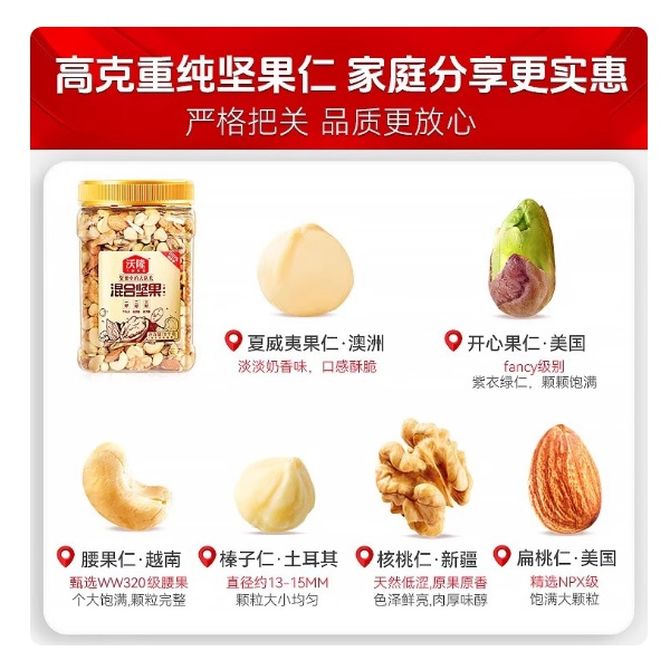 沃隆 混合纯坚果2斤装 纯坚果 兑换价格 18300 里程 会员卡别 终身白金卡 白金卡 金卡 银卡 普通卡 儿童卡 服务 由 美味思食品店 发货并提供售后 规格: 罐装 购买数量: 件 库存件 配送地址: 立即购买 加入购物车 成功添加到购物车 关闭 购物车共有 种商品 总金额为: