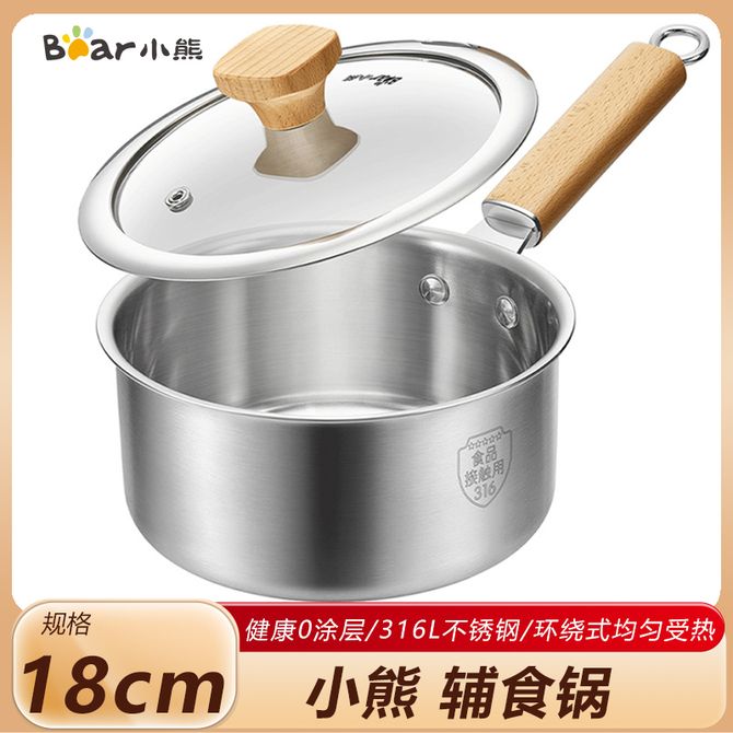 小熊 奶锅18cm 婴儿宝宝辅食锅煮面锅泡面锅汤锅蒸锅加厚316L不锈钢 单锅 【该款为18cm奶锅单锅 详情共用】健康0涂层 316L不锈钢 3层复合结构 环绕式均匀受热 兑换价格 5200 里程 会员卡别 终身白金卡 白金卡 金卡 银卡 普通卡 儿童卡 服务 由 广西桂雅文化传媒有限公司 发货并提供售后 颜色: 其他 购买数量: 件 库存件 配送地址: 立即购买 加入购物车 成功添加到购物车 关闭 购物车共有 种商品 总金额为: 组合销售 产品介绍 产品规格 售后服务 产品咨询 发现好货 德铂(Debo)多功能奶锅不粘雪平锅辅食煮面小汤锅燃气电磁炉通用20cm DEP-678 3800 里程 苏泊尔(SUPOR) 奶锅304不锈钢奶锅16cm小锅泡面煮奶婴儿辅食锅ST16H3 2400 里程 炊大皇/Cookerking 奶锅 不粘锅泡面锅煮奶锅宝宝婴儿辅食锅热牛奶小奶锅 青岚不粘雪平锅 22cm 3900 里程 苏泊尔(SUPOR) 304不锈钢奶锅16cm 加厚防烫汤锅宝宝辅食锅煮粥家用泡面锅婴儿煮奶锅 适合1-2人用 2400 里程 苏泊尔(SUPOR) 304不锈钢奶锅16cm 加厚防烫汤锅宝宝辅食锅煮粥家用泡面锅婴儿煮奶锅 2400 里程