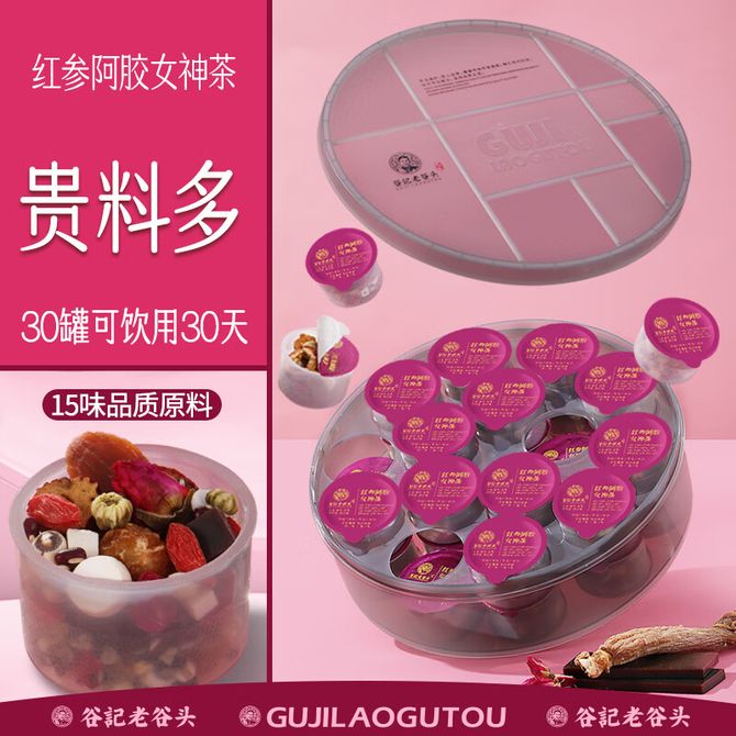 谷记老谷头/GUJILAOGUTOU 红参阿胶女神茶630g(30罐) 女士滋补养生茶