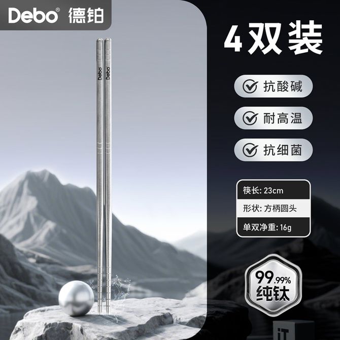 Debo 梅诺斯-四双装100%纯钛筷子家用高档分餐筷抗菌防霉磨砂防滑筷4双DEP-DS478 抗酸碱 防烫中空设计 耐高温 抗细菌 兑换价格 2300 里程 会员卡别 终身白金卡 白金卡 金卡 银卡 普通卡 儿童卡 服务 由 百宝诚 发货并提供售后 颜色: 银色 购买数量: 件 库存件 配送地址: 立即购买 加入购物车 成功添加到购物车 关闭 购物车共有 种商品 总金额为: