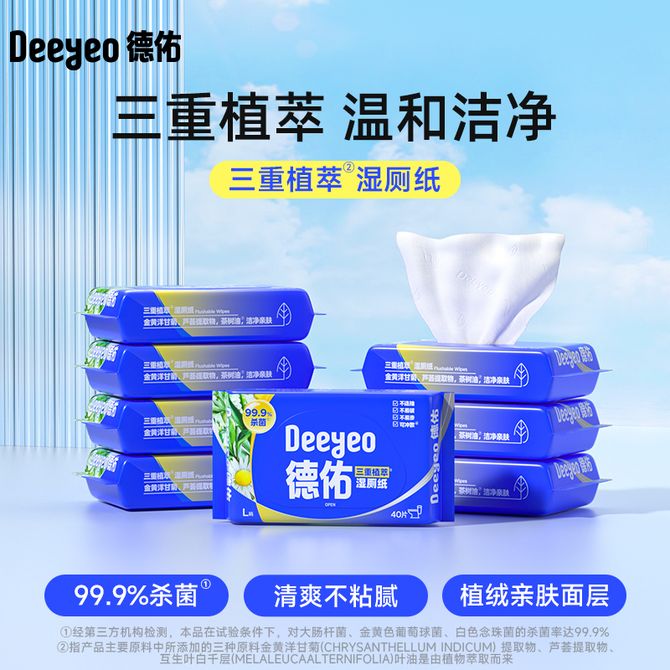 德佑/Deeyeo 三重植萃湿厕纸40片*10包/箱 卫生湿巾亲肤安全家庭实惠装 40片*10包,草本配方,温和亲肤 兑换价格 3000 里程 会员卡别 终身白金卡 白金卡 金卡 银卡 普通卡 儿童卡 服务 由 京狮文化生活馆 发货并提供售后 包装数量: 10包 购买数量: 件 库存件 配送地址: 立即购买 加入购物车 成功添加到购物车 关闭 购物车共有 种商品 总金额为: 组合销售 产品介绍 产品规格 售后服务 产品咨询 发现好货 维达卷纸 卫生纸实惠装厕纸家用厕所纸巾手纸整箱批有芯大卷家庭装 1200-2300 里程 维达 Vinda 卷纸 140g/卷*10卷 蓝色经典3层卫生纸 1300 里程 心相印抽纸 茶语丝享系列 量贩家庭装 3层*100抽*4包(茶香 压花) 1100 里程 心相印 经典系列 二层面巾纸 180抽*6包*1提 1100 里程 维达Vinda 超韧系列抽纸(3层*130抽*6包) 原生木浆卫生餐巾纸婴儿面巾纸 6包优惠装 1100 里程