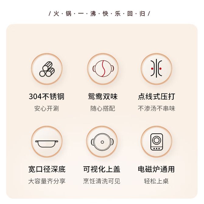 组合销售 产品介绍 产品规格 售后服务 产品咨询 发现好货 德铂(Debo)鸳鸯火锅304不锈钢30cm火锅涮锅锅具燃气电磁炉通用DEP-DS255 4800 里程 德世朗(DESLON) 液体加热器鸳鸯电火锅 DDQ-HG118 7900 里程 爱仕达(ASD)锅具火锅 30cm家用火锅 304不锈钢鸳鸯火锅加厚锅具电磁炉通用 5200 里程 爱仕达/ASD 火锅304不锈钢鸳鸯锅28CM火锅燃气电磁炉通用FS28A2WG 3700 里程 爱仕达/ASD 火锅304不锈钢鸳鸯锅32CM火锅大容量锅具电磁炉通用FS32A2WG 4800 里程