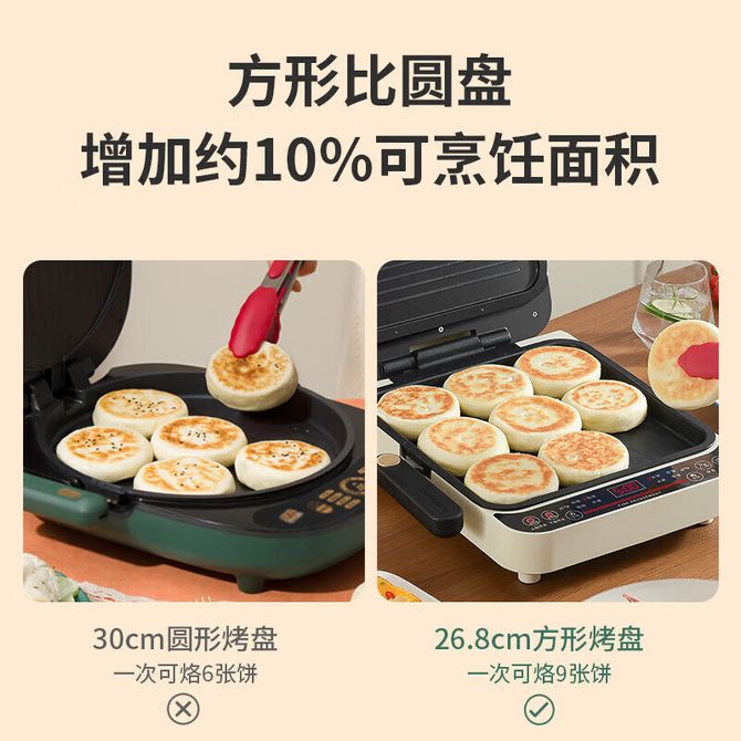 组合销售 产品介绍 产品规格 售后服务 产品咨询 发现好货 苏泊尔(SUPOR)电饼铛家用 双面加热煎饼铛煎烤机三明治机烙饼锅早餐机25mm加深烤盘火力可调JD31A847A 6500 里程 苏泊尔(SUPOR) 电饼铛 自动煎烤机 电火锅多功能 加大加深60mm双加热烙饼 锅面煎饼电饼档 两档火力 JT30A818 5700 里程 苏泊尔(SUPOR)电饼铛家用双面加热电饼档煎烤机烙饼机双面悬浮加热早餐机三明治机JJ30A648-Q 5700 里程 美的(Midea)电饼铛家用智能双面加热煎烤机烙饼机蛋饼机薄饼机煎饼烙饼锅JHN30F 4800 里程 奥克斯 电饼铛家庭用新款双面加热加大尺寸加深烤盘烙饼专用锅自动控温断电煎饼锅早餐机 5200 里程