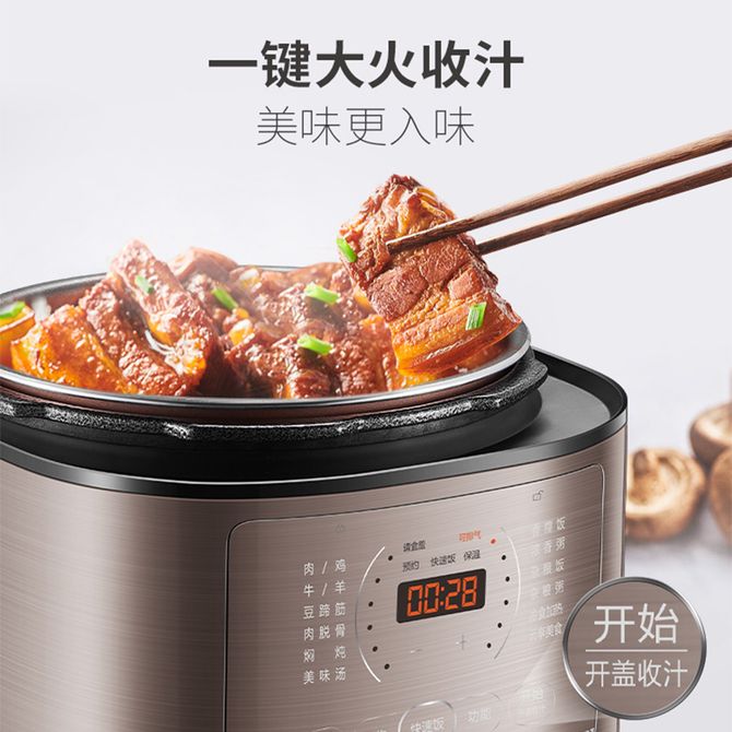 组合销售 产品介绍 产品规格 售后服务 产品咨询 发现好货 苏泊尔(SUPOR)电压力锅 6升大容量 智能触控 球釜双胆 开盖收汁 一键排压 SY-60YC8001Q 高压锅 16900 里程 美的/Midea 电压力锅家用5L大容量多功能高压锅双胆一键收汁智能预约不粘电高压锅电饭锅煮粥煲汤锅 一锅双胆【一键收汁入味】 YL50M1-702 10600 里程 苏泊尔(SUPOR) 5L电压力锅家用电高压锅双胆高压电饭锅煮饭智能预约 SY-50YC8186 11300 里程 美的/Midea 电压力锅 【一锅双胆】5L全自动家用智能预约 上蒸下煮 不粘双胆煲汤炖肉 YL50Q3-451 10900 里程 美的/Midea 电压力锅 高压锅家用电压力煲智能预约电饭煲大容量多功能定时预约电饭煲3-8人单胆旋钮款4L MY-E4809 8700 里程