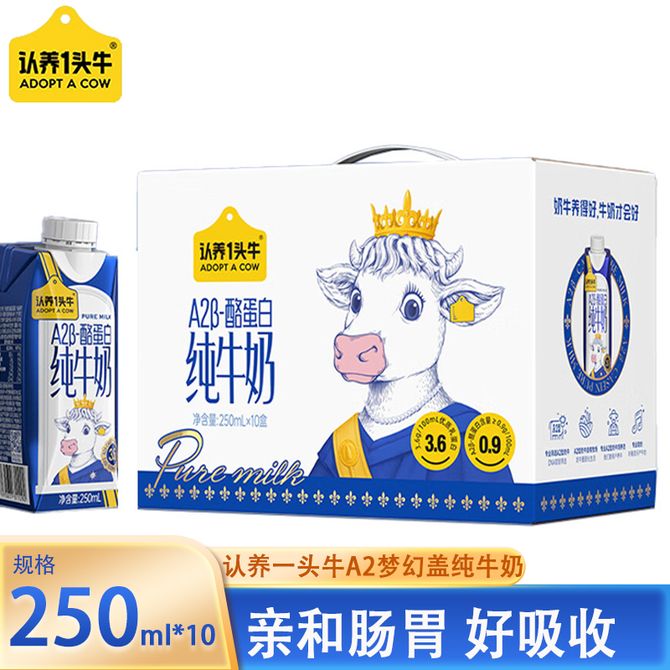 认养一头牛 A2β酪蛋白纯牛奶梦幻盖250ml*10盒 亲和肠胃有助吸收 3.6g乳蛋白,120mg原生高钙,亲和肠胃有助吸收 兑换价格 2400 里程 会员卡别 终身白金卡 白金卡 金卡 银卡 普通卡 儿童卡 服务 由 壮乡优品生活馆 发货并提供售后 规格: 盒装 购买数量: 件 库存件 配送地址: 立即购买 加入购物车 成功添加到购物车 关闭 购物车共有 种商品 总金额为: