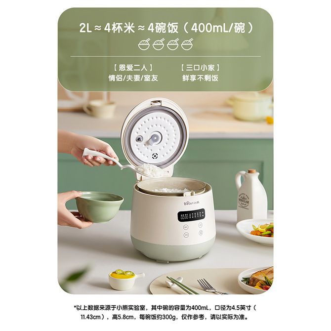 小熊/Bear 元气高颜值迷你电饭煲家用2L容量微电脑6大菜单抗菌不粘内胆小型电饭锅快煮饭多功能精煮柴火饭 2L容量元气高颜值 微电脑6大菜单 抗菌不粘内胆 兑换价格 7000 里程 会员卡别 终身白金卡 白金卡 金卡 银卡 普通卡 儿童卡 服务 由 中农创家电生活馆 发货并提供售后 颜色: 其他 购买数量: 件 库存件 配送地址: 立即购买 加入购物车 成功添加到购物车 关闭 购物车共有 种商品 总金额为: 组合销售 产品介绍 产品规格 售后服务 产品咨询 发现好货 苏泊尔(SUPOR) 电饭煲电饭锅4L大容量 不粘内胆4-6个人前置大屏面板24小时预约上蒸下煮多功能家用智能SF40FC0063 8300 里程 奥克斯/AUX 电饭煲3L电饭锅 2-3人小型预约智能电饭煲VK-309F2 5100 里程 苏泊尔(SUPOR) 迷你电饭煲家用电饭锅2-3人3L小容量蓝钻不粘内胆快煮饭功能智能预约小型多功能SF30FC0187 6100 里程 美菱/MELNG 电饭煲3L触控式预约定时MF-LC3005 4400 里程 苏泊尔(SUPOR) 煮饭煮粥智能预约多功能一锅多用小型微压电饭锅30FC0187 7200 里程