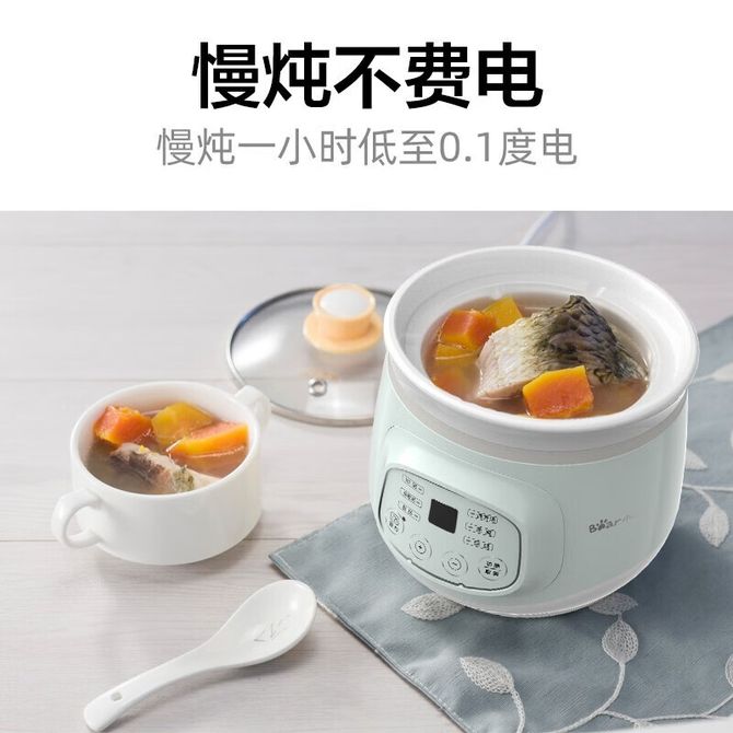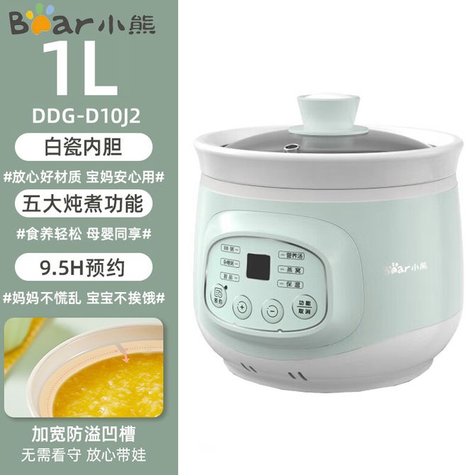 小熊/Bear 电炖锅 全自动智能预约免看管 1L 白瓷内胆 DDG-D10J2 可视玻璃上盖;温润白瓷;六大菜单;防溢设计; 兑换价格 4100 里程 会员卡别 终身白金卡 白金卡 金卡 银卡 普通卡 儿童卡 服务 由 小枫叶专营店 发货并提供售后 颜色: 绿色 购买数量: 件 库存件 配送地址: 立即购买 加入购物车 成功添加到购物车 关闭 购物车共有 种商品 总金额为: 组合销售 产品介绍 产品规格 售后服务 产品咨询 发现好货 小熊/Bear 电炖锅1-2人小炖锅煮粥锅智能预约定时煲汤锅炖汤锅燕窝炖盅 4400 里程 苏泊尔(SUPOR) 电火锅家用不粘煎涮炖煮多功能4L大容量一体式大火力电煮锅不粘煎涮炖煮多功能料理锅 H40YK757 5700 里程 西屋/Westinghouse 多功能电煮锅电炖锅1.6L一锅多能WFB16A 11600 里程 苏泊尔(SUPOR) 电火锅 宿舍小电锅学生寝室一体泡面小火锅 多功能锅涮肉涮菜 1.7L 【 单锅】H17YK489 3000 里程 小熊(Bear)电炖锅电炖盅煮粥神器煲汤锅炖汤锅婴儿煮粥锅熬粥燕窝炖盅DDG-E15K2 4800 里程