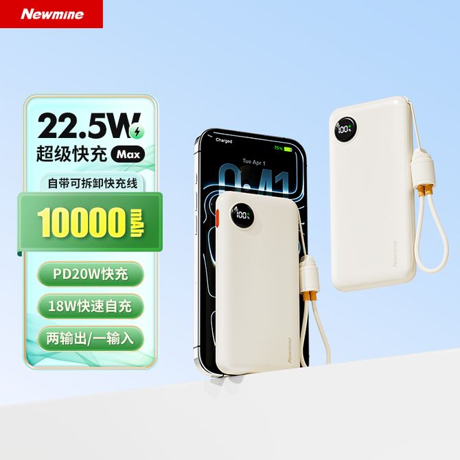 纽曼(Newmine) 【3C认证】自带线快充移动电源 22.5W超级闪充10000mAh双输出数显AL60 自带可拆卸双Type-C快充线,最新协议兼容广,PD20W双向快充,22.5W超级快充,LED数显,多重安全保护,3C认证可上飞机 兑换价格 4500 里程 会员卡别 终身白金卡 白金卡 金卡 银卡 普通卡 儿童卡 服务 由 智科精品 发货并提供售后 电池容量: 8001mAh-10000mAh 颜色: 白色 购买数量: 件 库存件 配送地址: 立即购买 加入购物车 成功添加到购物车 关闭 购物车共有 种商品 总金额为: