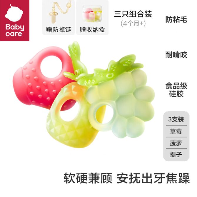 babycare 水果牙胶宝宝磨牙出牙期硅胶玩具口欲期咬咬乐三只组合装【草莓+提子+菠萝】 口欲期咬咬乐 兑换价格 4400 里程 会员卡别 终身白金卡 白金卡 金卡 银卡 普通卡 儿童卡 服务 由 萌枢母婴专营店 发货并提供售后 牙胶包装: 3个装 购买数量: 件 库存件 配送地址: 立即购买 加入购物车 成功添加到购物车 关闭 购物车共有 种商品 总金额为: 组合销售 产品介绍 产品规格 售后服务 产品咨询 发现好货 英氏(YEEHOO)宝宝乳牙刷婴儿幼刷舌苔口腔清洁神器棉棒新生儿硅胶纱布便携【舌头刷+乳牙刷】+收纳盒 1600 里程 babycare 安抚奶嘴新生儿咬胶超软宝宝睡觉神器S码(0-3月)【颜色随机发,有需求可备注】 1700 里程 英氏(YEEHOO) 小恐龙乳牙刷 Y21A 棕色 1500 里程 babycare 安抚奶嘴新生婴儿宝宝超软防胀气M码3-6个月睡觉神器【颜色随机,可以备注】 1700 里程 babycare 安抚奶嘴新生婴儿宝宝超软防胀气【L码】6个月+宝宝睡觉神器【颜色可备注】 1700 里程