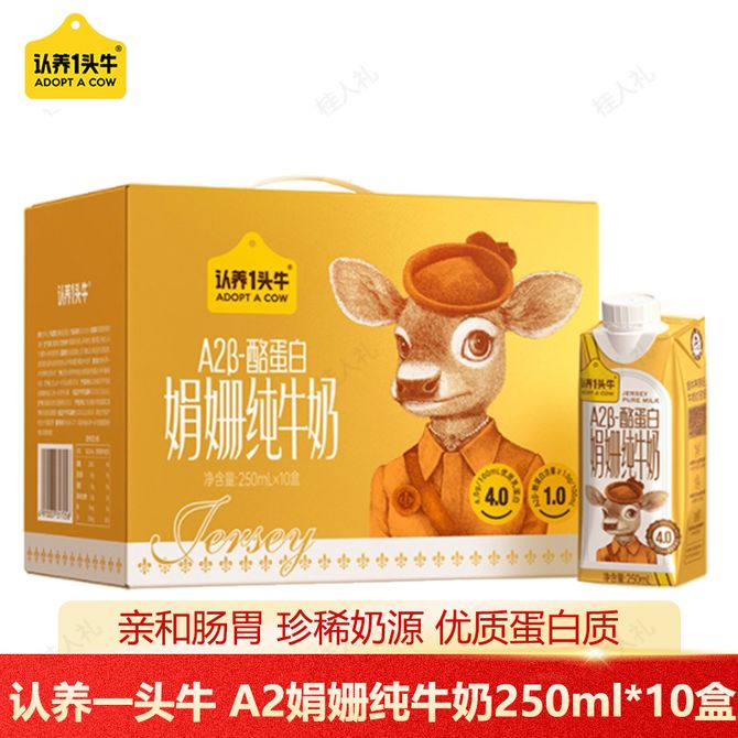认养一头牛 A2β-酪蛋白娟姗纯牛奶250ml*10盒奶源珍贵亲和肠胃 双重营养Plus升级 呵护安心成长加倍 兑换价格 3500 里程 会员卡别 终身白金卡 白金卡 金卡 银卡 普通卡 儿童卡 服务 由 广西桂人礼互联网科技有限公司 发货并提供售后 规格: 礼盒 购买数量: 件 库存件 配送地址: 立即购买 加入购物车 成功添加到购物车 关闭 购物车共有 种商品 总金额为: 组合销售 产品介绍 产品规格 售后服务 产品咨询 发现好货 蒙牛 特仑苏纯牛奶苗条装250ml×12盒 2900 里程 三元 经典小方白全脂纯牛奶250ml*24盒牛奶 整箱 3400 里程 伊利金典纯牛奶250ml*12盒整箱 2200 里程 伊利 金典纯牛奶整箱 250ml*12盒 3.6g乳蛋白 原生高钙 礼盒装 1800 里程 特仑苏 新日期纯牛奶250ml*12盒 3.6g乳蛋白 礼盒装 京东/顺丰发货 2400 里程