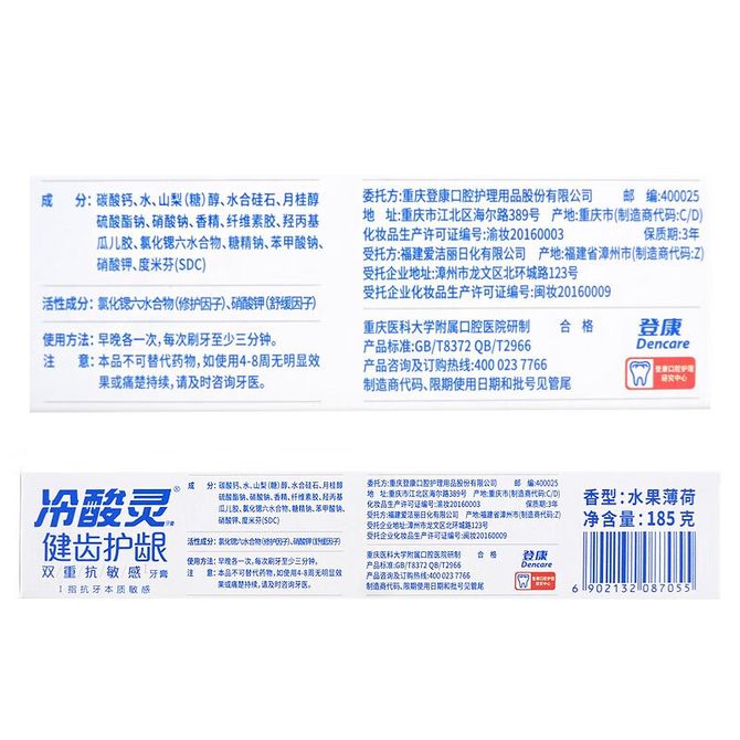 冷酸灵 健齿护龈双重抗敏感牙膏洁白抗敏185毫升X3支 下单规格:185克X3支 兑换价格 1200 里程 会员卡别 终身白金卡 白金卡 金卡 银卡 普通卡 儿童卡 服务 由 岸嘉生活馆 发货并提供售后 化妆品容量: 其他容量 购买数量: 件 库存件 配送地址: 立即购买 加入购物车 成功添加到购物车 关闭 购物车共有 种商品 总金额为: 组合销售 产品介绍 产品规格 售后服务 产品咨询 发现好货 云南白药牙膏单支清新口气呵护牙龈健康牙周冬青 活性肽165g 1500 里程 云南白药 健齿护龈改善牙龈问题清新口气留兰香型180g 1500 里程 云南白药 牙膏薄荷香型100g减轻牙龈问题清新口气祛除口腔异味 1100 里程 云南白药牙膏留兰香型180g 去黄牙垢口气清新减轻牙龈问题 1500 里程 云南白药 牙膏(薄荷清爽)230g 单支装 清新口气健齿护龈 经典清爽薄荷香型牙膏 1支装 1600 里程