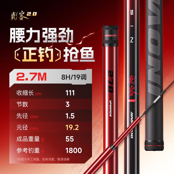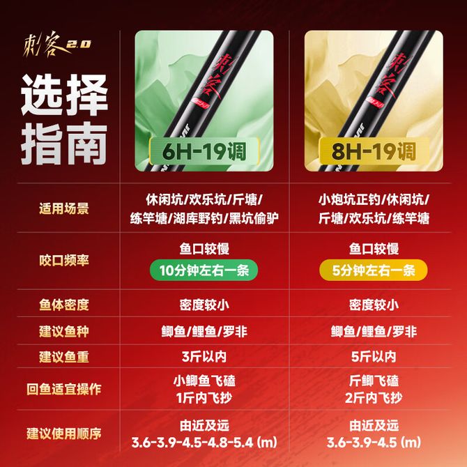 佳钓尼 刺客2.0 8H 黑坑专用鱼竿 超轻超硬19调 高强韧性 竞技钓鱼竿 周一到周五 工作日发货 兑换价格 5200-5700 里程 会员卡别 终身白金卡 白金卡 金卡 银卡 普通卡 儿童卡 服务 由 英科商贸运动户外 发货并提供售后 钓竿长度: 3.0米 2.7米 购买数量: 件 库存件 配送地址: 立即购买 加入购物车 成功添加到购物车 关闭 购物车共有 种商品 总金额为: 组合销售 产品介绍 产品规格 售后服务 产品咨询 发现好货 光威闪电小矶短节便携矶钓竿超轻超硬矶竿碳素远投钓鱼竿手海两用 4700-7500 里程 光威(GW) 清月鲫超轻超细鱼竿手竿37调鲫鱼竿野钓鲫杆台钓竿渔具清月鲫 6500-13000 里程 光威(GW) 影峰休闲二代鱼竿台钓竿28调4H碳素超轻超硬手杆综合竿 5300-10100 里程 光威鱼竿路亚竿天尊升级版右手水滴轮套装枪柄打黑鲈鱼翘嘴竿M调超硬路亚钓竿渔具 14400-16100 里程 佳钓尼 鱼竿 新款鲫鱼竿 黑坑钓鱼竿 手竿 野钓鱼杆(伏魔鲫小冈豆) 9000-16100 里程