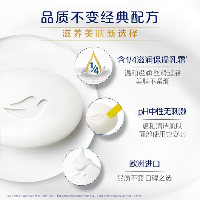 多芬/Dove 原装进口滋润保湿乳霜香皂90克*1块 洗脸香块 干净不干燥,可以洗脸的香块 兑换价格 1300 里程 会员卡别 终身白金卡 白金卡 金卡 银卡 普通卡 儿童卡 此商品正在进行团购,点击查看活动详情 服务 由 云尚优品 发货并提供售后 化妆品容量: 其他容量 购买数量: 件 库存件 配送地址: 立即购买 加入购物车 成功添加到购物车 关闭 购物车共有 种商品 总金额为: 组合销售 产品介绍 产品规格 售后服务 产品咨询 发现好货 舒肤佳洗手液纯白清香420ml+芦荟420ml (抑菌99.9% 温和洁净)(新老包装随机发货) 2200 里程 舒肤佳 焕肤红石榴108gX3 香皂(新老包装随机发货) 1800 里程 舒肤佳香皂超值六块装(纯白4块+薰衣草2块) 1400 里程 舒肤佳香皂100g*4块纯白清香 1100 里程 舒肤佳/Safeguard 香皂超值四块装(2纯白+2柠檬) 1100 里程