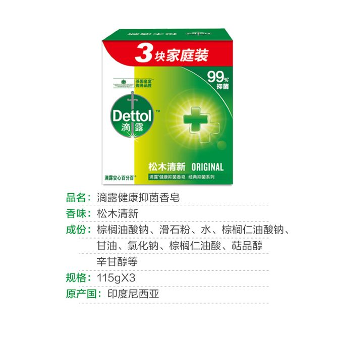滴露/Dettol 健康抑菌香皂115g*3块 松木清新 如有购买使用咨询可电话联系客服18810326768 兑换价格 1100 里程 会员卡别 终身白金卡 白金卡 金卡 银卡 普通卡 儿童卡 服务 由 旭启清洁纸品专营店 发货并提供售后 化妆品容量: 其他容量 购买数量: 件 库存件 配送地址: 立即购买 加入购物车 成功添加到购物车 关闭 购物车共有 种商品 总金额为: 组合销售 产品介绍 产品规格 售后服务 产品咨询 发现好货 舒肤佳洗手液纯白清香420ml+芦荟420ml (抑菌99.9% 温和洁净)(新老包装随机发货) 2200 里程 舒肤佳 焕肤红石榴108gX3 香皂(新老包装随机发货) 1800 里程 舒肤佳香皂超值六块装(纯白4块+薰衣草2块) 1400 里程 舒肤佳香皂100g*4块纯白清香 1100 里程 舒肤佳/Safeguard 香皂超值四块装(2纯白+2柠檬) 1100 里程