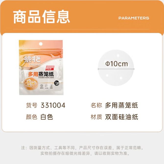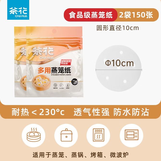 茶花(CHAHUA) 蒸笼纸10cm*150张 包子垫纸蒸馒头纸蒸包子不粘屉布硅油蒸屉纸