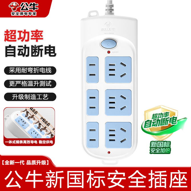 公牛(BULL) 六孔带总控开关家用电源儿童安全插板有线接线板拖线板 百搭外观 插拔顺畅 一键总控 大间距孔位 兑换价格 2100 里程 会员卡别 终身白金卡 白金卡 金卡 银卡 普通卡 儿童卡 服务 由 聚品惠家电生活馆 发货并提供售后 插排线: 有线 插位: 6插位 购买数量: 件 库存件 配送地址: 立即购买 加入购物车 成功添加到购物车 关闭 购物车共有 种商品 总金额为: 组合销售 产品介绍 产品规格 售后服务 产品咨询 发现好货 小米 多功能 3孔3USB插口 2A快充 防儿童使用安全设计插口电源插线板 白色 3000 里程 飞利浦/Philips 新国标分控插座/插线板/插板/接线板/拖线板 分控4位1.8米SPB3140WA/93 1800 里程 飞利浦/Philips 排插 1.8米总控插座 6位5孔插排 SPB2163WA/93 1500 里程 公牛(BULL) 插座新国标高品质插线3位总控全长1.8米安全保护门插线板插排排插接线板拖线板 1200 里程 公牛(BULL) 新国标插座4位总控开关全长1.8米GN-607 1600 里程