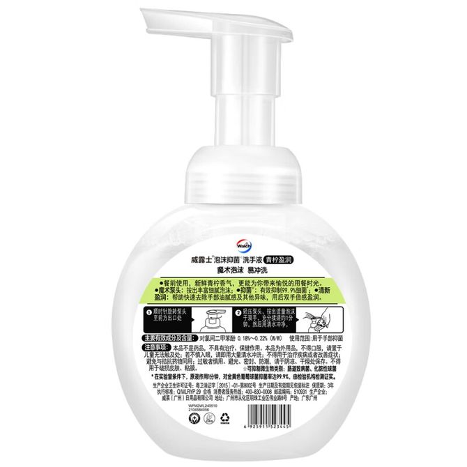 威露士/Walch 青柠盈润泡沫洗手液 225ml*2瓶 杀菌99.9%家庭装泡沫丰富洗护手滋润洗手剂 温和护手 深入洁净 泡沫丰富 兑换价格 1600 里程 会员卡别 终身白金卡 白金卡 金卡 银卡 普通卡 儿童卡 服务 由 上海耀嬉网络科技有限公司 发货并提供售后 清洁剂容量: 其他容量 净含量: 其他容量 购买数量: 件 库存件 配送地址: 立即购买 加入购物车 成功添加到购物车 关闭 购物车共有 种商品 总金额为:
