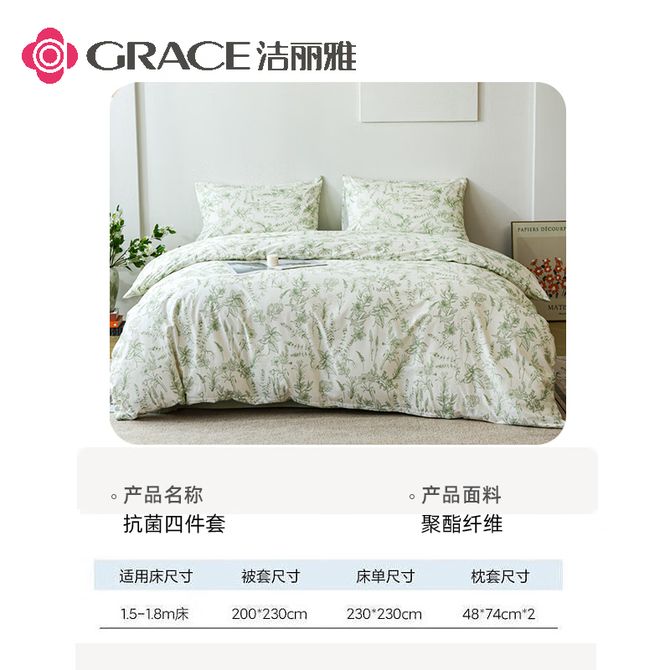 洁丽雅/Grace 抗菌亲肤四件套 素雅 JDSJT085 100%聚酯纤维,被套:200*230cm,床单:230*230cm,枕套:48*74cm*2 兑换价格 5300 里程 会员卡别 终身白金卡 白金卡 金卡 银卡 普通卡 儿童卡 服务 由 吉时雨居家生活馆 发货并提供售后 床品套件数量: 四件套 被、单尺寸: 200*230cm 颜色: 花色 购买数量: 件 库存件 配送地址: 立即购买 加入购物车 成功添加到购物车 关闭 购物车共有 种商品 总金额为: