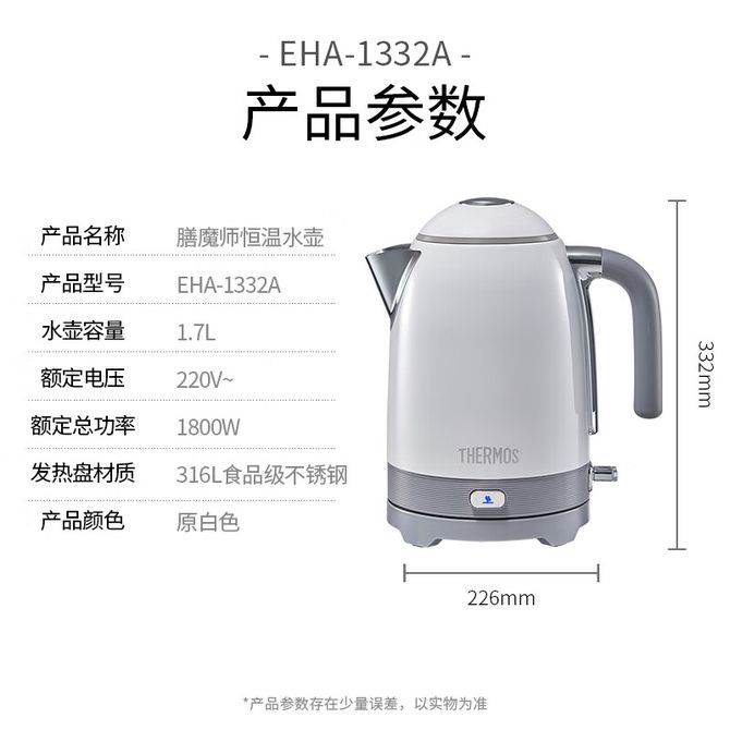 膳魔师(THERMOS) 电热水壶/恒温保温热水壶/一体无缝内胆泡茶EHA-1332A 1.7L 月光白 部分商品新旧包装可能会有变更,还请多多谅解。 兑换价格 21700 里程 会员卡别 终身白金卡 白金卡 金卡 银卡 普通卡 儿童卡 服务 由 清芃电器专营店 发货并提供售后 颜色: 其他 购买数量: 件 库存件 配送地址: 立即购买 加入购物车 成功添加到购物车 关闭 购物车共有 种商品 总金额为: 组合销售 产品介绍 产品规格 售后服务 产品咨询 发现好货 苏泊尔(SUPOR)电水壶 1.7L 不锈钢/YL SW-17S13A 5700 里程 志高/Chigo 电水壶烧水壶1.8L大容量电热水壶双层防烫自动断电家用烧水开水壶不锈钢 电水壶 DC-A18F 1900 里程 小熊/Bear 电水壶家用烧水壶 不锈钢自动断电恒温热水壶保温一体电热水壶1.5L容量 3500 里程 小熊/Bear 烧水壶电水壶热水壶电热水壶开水壶304不锈钢内胆双层防烫1.5L大容量ZDH-Q15U8 3000 里程 志高(CHIGO) 电水壶1.8L大容量烧水壶家用热水壶开水壶DC-A18F 1900 里程