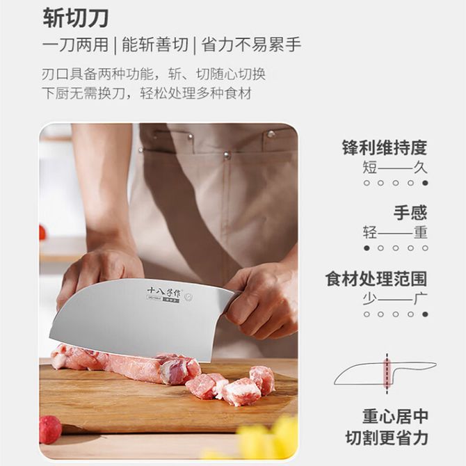 十八子作 寻味锋斩切刀轻量化菜刀斩骨刀 详情共用:3D曲面刀柄,一刀两用,能切能斩 兑换价格 5700 里程 会员卡别 终身白金卡 白金卡 金卡 银卡 普通卡 儿童卡 服务 由 众生缘(江苏)互联网科技有限公司 发货并提供售后 颜色: 其他 购买数量: 件 库存件 配送地址: 立即购买 加入购物车 成功添加到购物车 关闭 购物车共有 种商品 总金额为: 组合销售 产品介绍 产品规格 售后服务 产品咨询 发现好货 拜格(Bayco) 锤纹菜刀家用切片刀厨师刀 BD2957 1100 里程 张小泉 家用菜刀炫系列切片刀切肉单刀菜刀D-51032100 1700 里程 张小泉 家用女士专用菜刀切片刀免磨不锈钢厨房刀具PD-170 2200 里程 拜格(Bayco) 不锈钢菜刀三件套刀具套装菜刀斩骨刀水果刀组合 BD3453 1700 里程 张小泉黑金刚刀具二件套 D40170100 3500 里程