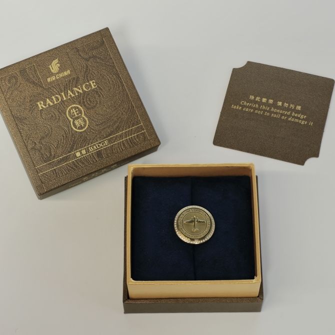 Air China 两航起义系列徽章 材质:黄铜 尺寸:24mm*24mm 兑换价格 7400 里程 会员卡别 终身白金卡 白金卡 金卡 银卡 普通卡 儿童卡 服务 由 凤凰优选旗舰店 发货并提供售后 规格: 礼盒 颜色: 其他 购买数量: 件 库存件 配送地址: 立即购买 加入购物车 成功添加到购物车 关闭 购物车共有 种商品 总金额为: 组合销售 产品介绍 产品规格 售后服务 产品咨询 发现好货 Air China A350-900飞机模型(1:400) 4400 里程 Air China 陶瓷马克杯 2500 里程 Air China C919飞机机模(1:240) 4300 里程 Air China B747-8飞机模型(1:400) 6000 里程 Air China 胖安达不锈钢马克杯 4200 里程