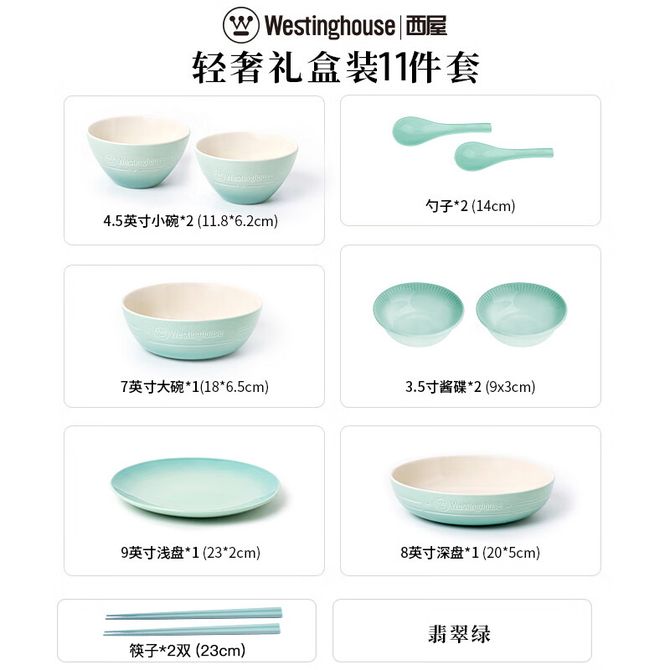 西屋/Westinghouse 轻奢翡翠绿陶瓷碗盘餐具11件套 详情共用:此款为翡翠绿,高温色釉,健康安心 兑换价格 13000 里程 会员卡别 终身白金卡 白金卡 金卡 银卡 普通卡 儿童卡 服务 由 众生缘(江苏)互联网科技有限公司 发货并提供售后 颜色: 其他 购买数量: 件 库存件 配送地址: 立即购买 加入购物车 成功添加到购物车 关闭 购物车共有 种商品 总金额为: