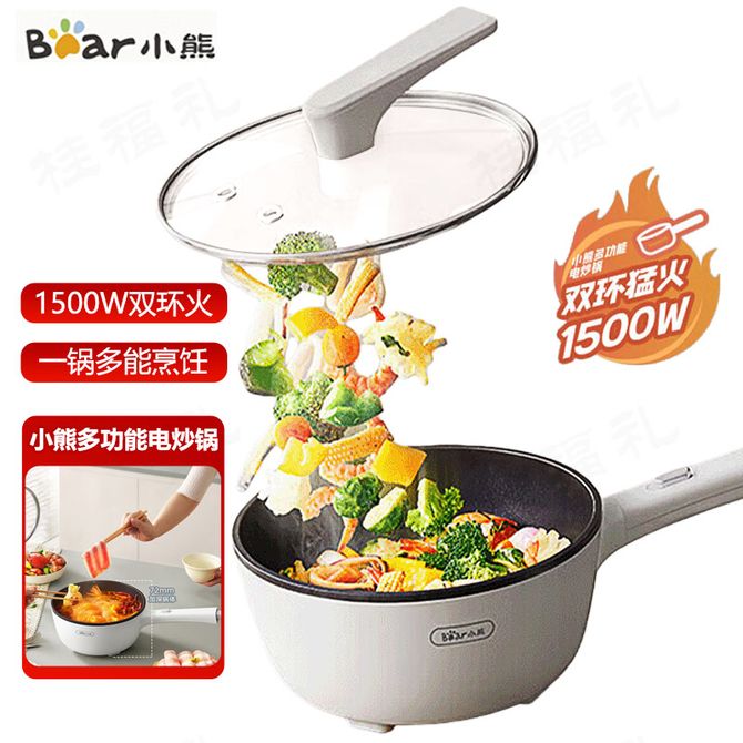 小熊/Bear 电炒锅电煮锅电火锅家用多功能一体煎炒炖煮不粘宿舍电热锅 双环发热包裹,翻炒加热均匀,安心不粘涂层,一抹即净易清洗,轻巧不占空间厨房轻松收纳。 兑换价格 5200 里程 会员卡别 终身白金卡 白金卡 金卡 银卡 普通卡 儿童卡 服务 由 广西桂福礼供应链管理有限公司 发货并提供售后 颜色: 其他 购买数量: 件 库存件 配送地址: 立即购买 加入购物车 成功添加到购物车 关闭 购物车共有 种商品 总金额为: 组合销售 产品介绍 产品规格 售后服务 产品咨询 发现好货 苏泊尔(SUPOR)空气炸锅 家用多功能4.2L大容量 烤箱薯条机 无油烟电炸锅 大功率 无油低脂煎炸锅KJ42D811 6500 里程 苏泊尔(SUPOR)空气炸锅家用3L大容量电炸锅 蒸汽嫩炸多功能无油烟煎炸薯条机烤箱KD30DQ815 21700 里程 美的/Midea 空气炸锅 家用5升可视炸锅金属内腔体微蒸汽多功能智能双旋控温电炸锅 KZE5089 10900 里程 美的/Midea 空气炸锅 可视 不用翻面 金属内腔 蒸汽嫩炸 三档烘烤风力 5L KZC5089 10700 里程 小熊/Bear 空气炸锅 4D漩烤不用翻面 全自动 5L实用大容量 可视 蒸汽嫩炸 控油脱脂 炸烤箱一体机 9100 里程