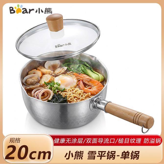 小熊 雪平锅20cm 煮奶锅泡面锅家用无涂层辅食锅304不锈钢汤锅 单锅 【此款为20cm雪平锅 单锅,详情共用】健康无涂层,双面导流口,槌目纹理 防溢锅,磁炉通用 兑换价格 3500 里程 会员卡别 终身白金卡 白金卡 金卡 银卡 普通卡 儿童卡 服务 由 广西桂雅文化传媒有限公司 发货并提供售后 颜色: 其他 购买数量: 件 库存件 配送地址: 立即购买 加入购物车 成功添加到购物车 关闭 购物车共有 种商品 总金额为: 组合销售 产品介绍 产品规格 售后服务 产品咨询 发现好货 德铂(Debo)多功能奶锅不粘雪平锅辅食煮面小汤锅燃气电磁炉通用20cm DEP-678 3800 里程 苏泊尔(SUPOR) 奶锅304不锈钢奶锅16cm小锅泡面煮奶婴儿辅食锅ST16H3 2400 里程 炊大皇/Cookerking 奶锅 不粘锅泡面锅煮奶锅宝宝婴儿辅食锅热牛奶小奶锅 青岚不粘雪平锅 22cm 3900 里程 苏泊尔(SUPOR) 304不锈钢奶锅16cm 加厚防烫汤锅宝宝辅食锅煮粥家用泡面锅婴儿煮奶锅 适合1-2人用 2400 里程 苏泊尔(SUPOR) 304不锈钢奶锅16cm 加厚防烫汤锅宝宝辅食锅煮粥家用泡面锅婴儿煮奶锅 2400 里程