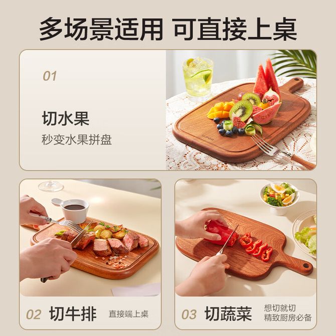 苏泊尔(SUPOR) 切菜板乌檀木砧板牛排盘西餐摆盘牛扒披萨盘 32*23*2cm 实木辅食小菜板水果板 适合3-4人 BC322320AV1 兑换价格 4100 里程 会员卡别 终身白金卡 白金卡 金卡 银卡 普通卡 儿童卡 服务 由 人人余厨具专营店 发货并提供售后 颜色: 摩卡棕 购买数量: 件 库存件 配送地址: 立即购买 加入购物车 成功添加到购物车 关闭 购物车共有 种商品 总金额为: