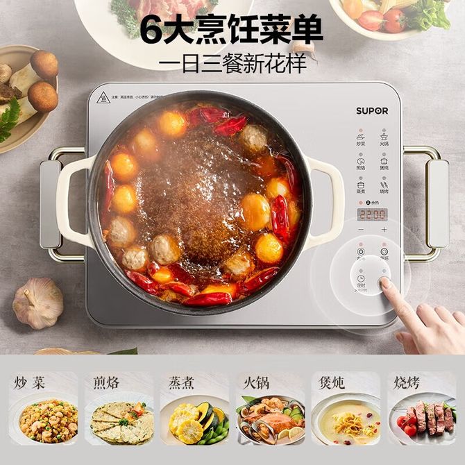 苏泊尔(SUPOR) 电陶炉C22-CS07 煮茶电磁炉家用新型超薄彩印双环大功率电池炉大面板火锅炒菜围炉煮茶炉 煮茶电磁炉家用新型超薄彩印双环大功率电池炉大面板火锅炒菜围炉煮茶炉 兑换价格 16500 里程 会员卡别 终身白金卡 白金卡 金卡 银卡 普通卡 儿童卡 服务 由 纳华优选 发货并提供售后 颜色: 银色 购买数量: 件 库存件 配送地址: 立即购买 加入购物车 成功添加到购物车 关闭 购物车共有 种商品 总金额为: 组合销售 产品介绍 产品规格 售后服务 产品咨询 发现好货 美的/Midea 电磁炉2100W大功率家用触控按键耐用面板八档火力定时功能防水电磁灶火锅炉C21-RT21E01 2100W大功率 6500 里程 美的(Midea) 电磁炉 家用大火力电池炉电磁灶 RT21E0105 7000 里程 美的(Midea)电磁炉商用2200W大功率配锅套装家用电磁灶触控MC-CL22Q1-405J 7800 里程 美的/Midea 电磁炉 家用大功率 4D防水面板 2200W大火力炒菜火锅不粘炒锅一体小型电磁灶 5700 里程 美的(Midea)电磁炉家用2200W大火力火锅炉汉森面板智能定时旋风防堵风机C22-RT22E01 7000 里程