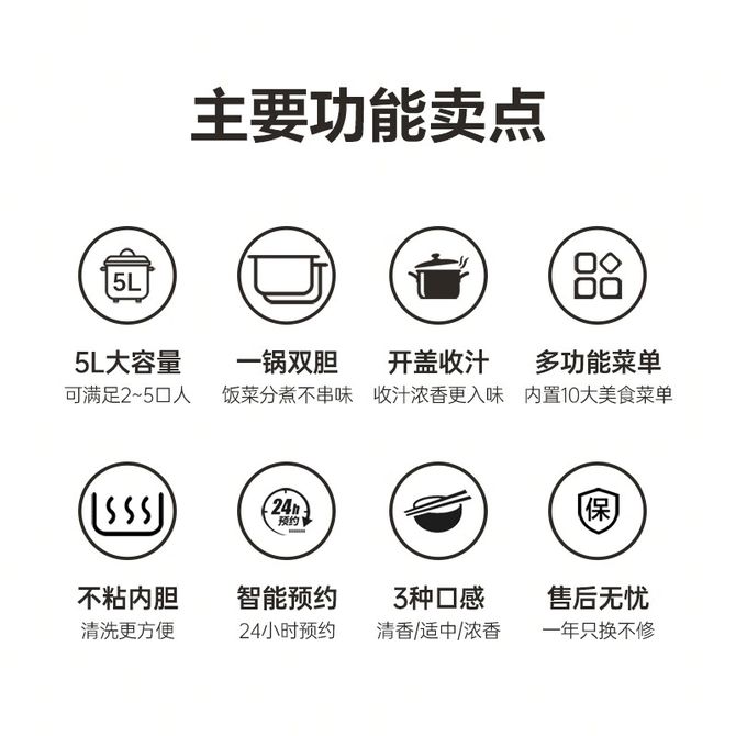 组合销售 产品介绍 产品规格 售后服务 产品咨询 发现好货 苏泊尔(SUPOR)电压力锅 6升大容量 智能触控 球釜双胆 开盖收汁 一键排压 SY-60YC8001Q 高压锅 16900 里程 苏泊尔(SUPOR) 5L电压力锅家用电高压锅双胆高压电饭锅煮饭智能预约 SY-50YC8186 11300 里程 美的/Midea 电压力锅 高压锅家用电压力煲智能预约电饭煲大容量多功能定时预约电饭煲3-8人单胆旋钮款4L MY-E4809 8700 里程 美的/Midea 电压力锅 【双胆】5升大容量电饭煲全自动智能饭锅多功能高压锅 24小时智能预约 MY-E523 10400 里程 美的/Midea 提鲜系列电压力锅5升家用双胆高压锅 全自动智能预约多功能YL50Q3-451 10900 里程