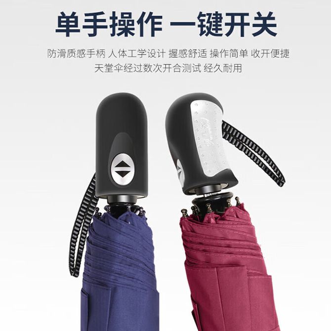 天堂伞 全自动伞自开收三折叠晴雨两用伞男女防风商务雨伞 33819E都市生活 防晒款 全自动晴雨两用伞,UPF50+黑胶防晒,铝合金+玻璃纤维伞骨更抗风暴。 兑换价格 3700 里程 会员卡别 终身白金卡 白金卡 金卡 银卡 普通卡 儿童卡 服务 由 快乐集势家居日用专营店 发货并提供售后 颜色: 黑色 购买数量: 件 库存件 配送地址: 立即购买 加入购物车 成功添加到购物车 关闭 购物车共有 种商品 总金额为: 组合销售 产品介绍 产品规格 售后服务 产品咨询 发现好货 天堂伞 加大雨伞三折 晴雨两用商务伞10骨大雨伞男女 30721EJDX岩石蓝 1600 里程 雨景/rainscape 简约十骨大号男士三折雨伞 折叠伞 男女商务晴雨伞65CM*10骨 2200 里程 雨景/rainscape 男士全自动商务雨伞 十骨全自动晴雨伞 折叠商务伞 两用双人超大加固防风三折伞 4400 里程 美度(MAYDU) 三折自动雨伞环扣便挂手柄加固防风简约清新配色反向折叠雨伞 2800 里程 天玮伞业/Tianwei umbrella 雨伞 六折防晒防紫外线太阳伞 迷你便携小巧遮阳伞 1500 里程