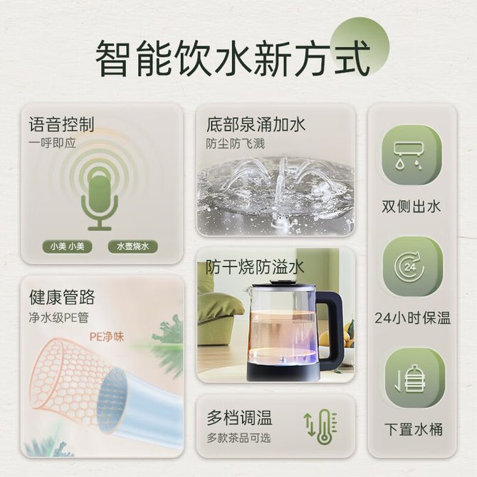 组合销售 产品介绍 产品规格 售后服务 产品咨询 发现好货 小熊/Bear 抽水器桶装水 电动压水器自动吸水器矿泉水上水器饮水机大桶水取水器抽水泵316不锈钢 2200 里程 美菱/MELNG 家用茶吧机立式饮水机远程遥控智能触控大屏 MY-A06 16500 里程 小熊/Bear 抽水器 YSJ-D06H5 2400 里程 小熊/Bear 电动抽水器316不锈钢桶装水抽水泵电动压水器自动吸水器取水器矿泉水上水器饮水机大桶水 2200 里程 小熊/Bear 电热水瓶 家用5升大容量饮水机烧水壶 智能感光休眠节能防烫除氯恒温多段保温一体电热水壶 ZDH-H50H2 14600 里程