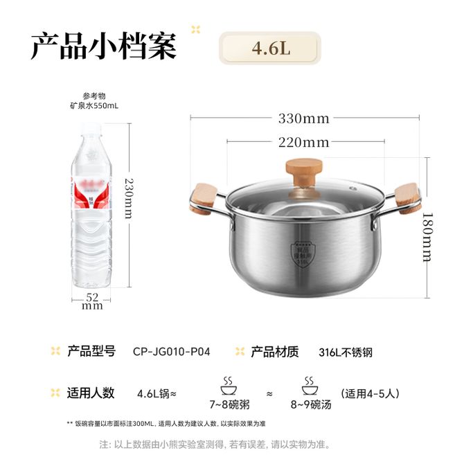 小熊 汤锅 家用多功能炖锅蒸锅煮粥锅22cm 详情共用:此款为22cm,316不锈钢,三层复合底,一体锅身易清洗 兑换价格 5700 里程 会员卡别 终身白金卡 白金卡 金卡 银卡 普通卡 儿童卡 服务 由 众生缘(江苏)互联网科技有限公司 发货并提供售后 颜色: 其他 购买数量: 件 库存件 配送地址: 立即购买 加入购物车 成功添加到购物车 关闭 购物车共有 种商品 总金额为: 组合销售 产品介绍 产品规格 售后服务 产品咨询 发现好货 拜格 带磁不锈钢28CM单层汤蒸锅 BG1197 2000 里程 德铂(Debo) 弗伦斯堡不锈钢汤锅炖锅20cm电磁炉通用 DEP-179 2600 里程 康宁visions晶彩系列透明锅琥珀色玻璃锅耐热可明火汤锅炖锅 1.25L晶彩锅VS-12-E-LCL/ZK 10500 里程 拜格奶锅配蒸格 宝宝辅食锅汤锅不锈钢加厚电磁炉燃气通用蒸锅泡面锅 BG1354 2100 里程 拜格(Bayco) 不锈钢带蒸格小奶锅16cm 婴儿辅食锅 汤锅煮面锅 燃气电磁炉通用 BG8198 1700 里程