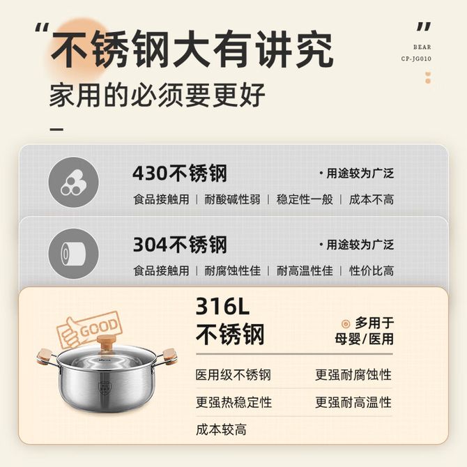 小熊 316L不锈钢汤锅24cm家用蒸鱼炖煮粥锅0涂层易清洗燃气灶电磁炉通用 【汤锅24cm,单锅无蒸笼】健康0涂层,易清洗 兑换价格 6500 里程 会员卡别 终身白金卡 白金卡 金卡 银卡 普通卡 儿童卡 服务 由 卓鹏商贸生活馆 发货并提供售后 颜色: 其他 购买数量: 件 库存件 配送地址: 立即购买 加入购物车 成功添加到购物车 关闭 购物车共有 种商品 总金额为: 组合销售 产品介绍 产品规格 售后服务 产品咨询 发现好货 拜格 带磁不锈钢28CM单层汤蒸锅 BG1197 2000 里程 德铂(Debo) 弗伦斯堡不锈钢汤锅炖锅20cm电磁炉通用 DEP-179 2600 里程 康宁visions晶彩系列透明锅琥珀色玻璃锅耐热可明火汤锅炖锅 1.25L晶彩锅VS-12-E-LCL/ZK 10500 里程 拜格奶锅配蒸格 宝宝辅食锅汤锅不锈钢加厚电磁炉燃气通用蒸锅泡面锅 BG1354 2100 里程 拜格(Bayco) 不锈钢带蒸格小奶锅16cm 婴儿辅食锅 汤锅煮面锅 燃气电磁炉通用 BG8198 1700 里程
