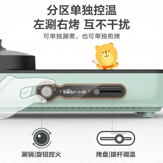 小熊/Bear 电烧烤炉多功能料理锅电火锅家用电烤炉烤肉机烤涮一体锅烧烤机 一机多用煎/涮/烤/煮/炒 加大加深烤盘煎烤不易溅油 多档调温轻松掌控火候 兑换价格 10000 里程 会员卡别 终身白金卡 白金卡 金卡 银卡 普通卡 儿童卡 服务 由 聚品惠家电生活馆 发货并提供售后 颜色: 其他 购买数量: 件 库存件 配送地址: 立即购买 加入购物车 成功添加到购物车 关闭 购物车共有 种商品 总金额为: 组合销售 产品介绍 产品规格 售后服务 产品咨询 发现好货 苏泊尔(SUPOR)电饼铛家用 双面加热煎饼铛煎烤机三明治机烙饼锅早餐机25mm加深烤盘火力可调JD31A847A 6500 里程 苏泊尔(SUPOR) 电饼铛 自动煎烤机 电火锅多功能 加大加深60mm双加热烙饼 锅面煎饼电饼档 两档火力 JT30A818 5700 里程 苏泊尔(SUPOR)电饼铛家用双面加热电饼档煎烤机烙饼机双面悬浮加热早餐机三明治机JJ30A648-Q 5700 里程 美的(Midea)电饼铛家用智能双面加热煎烤机烙饼机蛋饼机薄饼机煎饼烙饼锅JHN30F 4800 里程 奥克斯 电饼铛家庭用新款双面加热加大尺寸加深烤盘烙饼专用锅自动控温断电煎饼锅早餐机 5200 里程