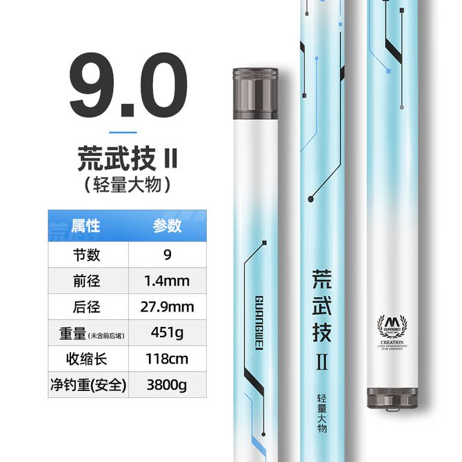 光威(GW) 荒武技二代轻量大物钓竿碳素鲢鳙青鱼 9m 荒武技Ⅱ轻量大物-9.0米 兑换价格 42200 里程 会员卡别 终身白金卡 白金卡 金卡 银卡 普通卡 儿童卡 服务 由 盛为运动户外专营店 发货并提供售后 钓竿长度: 7.2米以上 购买数量: 件 库存件 配送地址: 立即购买 加入购物车 成功添加到购物车 关闭 购物车共有 种商品 总金额为: 组合销售 产品介绍 产品规格 售后服务 产品咨询 发现好货 光威闪电小矶短节便携矶钓竿超轻超硬矶竿碳素远投钓鱼竿手海两用 4700-7500 里程 光威(GW) 清月鲫超轻超细鱼竿手竿37调鲫鱼竿野钓鲫杆台钓竿渔具清月鲫 6500-13000 里程 光威(GW) 影峰休闲二代鱼竿台钓竿28调4H碳素超轻超硬手杆综合竿 5300-10100 里程 佳钓尼 鱼竿 新款鲫鱼竿 黑坑钓鱼竿 手竿 野钓鱼杆(伏魔鲫小冈豆) 9000-16100 里程 佳钓尼 超短超轻超硬钓鱼竿 长空溪流竿 短节溪流竿 鱼竿 渔具台钓 3900-6100 里程