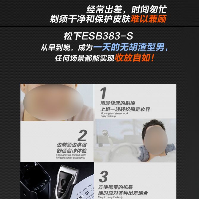 松下/Panasonic 剃须刀电动往复式男士刮胡刀进口单刀头 生日礼物生日礼物男士礼物送男友送老公ESB383 正品包邮 节假日发货可能会有延迟,部分商品可能进行包装变更,还请多多谅解! 兑换价格 3500 里程 会员卡别 终身白金卡 白金卡 金卡 银卡 普通卡 儿童卡 服务 由 清芃电器专营店 发货并提供售后 颜色: 其他 购买数量: 件 库存件 配送地址: 立即购买 加入购物车 成功添加到购物车 关闭 购物车共有 种商品 总金额为: 组合销售 产品介绍 产品规格 售后服务 产品咨询 发现好货 映趣 电动剃须刀男士刮胡刀充电式三刀 BlackStone黑色 3100 里程 飞利浦/Philips 电动剃须刀 S2509/S2508 三刀头 1小时充电 全身水洗 男士电动剃须刀胡须刀干湿两用须刨高效闪充 10900 里程 朗威 剃须刀电动剃须刀充电式刮胡刀电动男士双头浮动胡须胡子刀 RS182 1100 里程 超人/SID 电动剃须刀 RS210/RS215双刀头 全身水洗 便携式小巧迷 你出差旅行车载男士电动刮胡刀 2600 里程 小米 电动剃须刀小巧便携刮胡刀 Type-c充电全身水洗低噪音充电式胡须刀S100 4000 里程