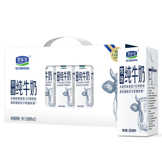 君乐宝(JUNLEBAO) 牧场(欧盟标准)纯牛奶250ml*12 从原奶到成品112项检测 兑换价格 2500 里程 会员卡别 终身白金卡 白金卡 金卡 银卡 普通卡 儿童卡 服务 由 南美进口馆 发货并提供售后 规格: 礼盒 购买数量: 件 库存件 配送地址: 立即购买 加入购物车 成功添加到购物车 关闭 购物车共有 种商品 总金额为: 组合销售 产品介绍 产品规格 售后服务 产品咨询 发现好货 蒙牛 特仑苏纯牛奶苗条装250ml×12盒 2900 里程 三元 经典小方白全脂纯牛奶250ml*24盒牛奶 整箱 3400 里程 伊利金典纯牛奶250ml*12盒整箱 2200 里程 伊利 金典纯牛奶整箱 250ml*12盒 3.6g乳蛋白 原生高钙 礼盒装 1800 里程 特仑苏 新日期纯牛奶250ml*12盒 3.6g乳蛋白 礼盒装 京东/顺丰发货 2400 里程