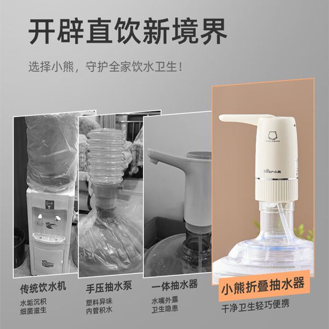 小熊/Bear 电动桶装水抽水器桶装纯净饮用水上水器压水器饮水机抽水泵 可折叠水嘴 强劲续航 USB充电 多桶型适用 兑换价格 2600 里程 会员卡别 终身白金卡 白金卡 金卡 银卡 普通卡 儿童卡 服务 由 聚品惠家电生活馆 发货并提供售后 颜色: 其他 购买数量: 件 库存件 配送地址: 立即购买 加入购物车 成功添加到购物车 关闭 购物车共有 种商品 总金额为: 组合销售 产品介绍 产品规格 售后服务 产品咨询 发现好货 小熊/Bear 桶装水抽水器 电动抽水泵自动饮用水桶上水器 饮水机抽水器 折叠防尘 YSJD-06H5 2600 里程 小熊/Bear 抽水器桶装水 电动压水器自动吸水器矿泉水上水器饮水机大桶水取水器抽水泵316不锈钢 2200 里程 美菱/MELNG 家用茶吧机立式饮水机远程遥控智能触控大屏 MY-A06 16500 里程 小熊/Bear 抽水器 YSJ-D06H5 2400 里程 小熊/Bear 电动抽水器316不锈钢桶装水抽水泵电动压水器自动吸水器取水器矿泉水上水器饮水机大桶水 2200 里程