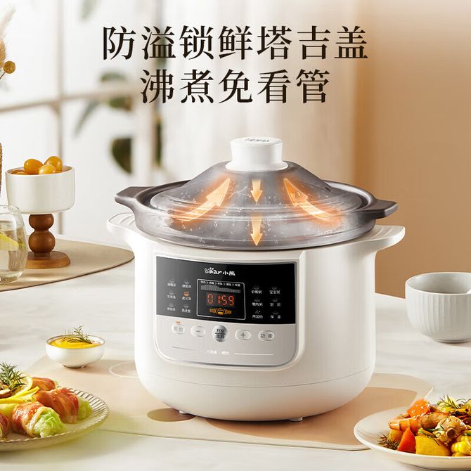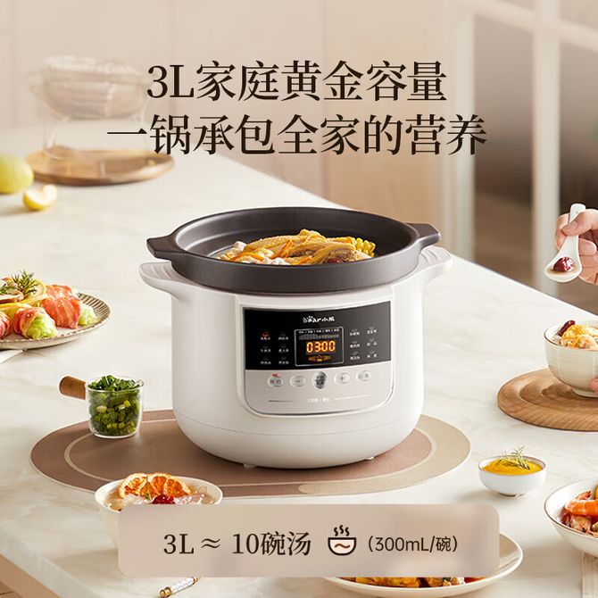 小熊/Bear 家用煲汤电炖锅 3L电砂锅电炖盅 炖汤锅炖汤盅养生煲粥锅智能预约 11大菜单 3L恰好容量 24小时预约 塔吉式锅盖 原矿紫陶 兑换价格 7400 里程 会员卡别 终身白金卡 白金卡 金卡 银卡 普通卡 儿童卡 服务 由 广西自贸区京通桂达科技发展有限公司 发货并提供售后 颜色: 其他 购买数量: 件 库存件 配送地址: 立即购买 加入购物车 成功添加到购物车 关闭 购物车共有 种商品 总金额为: