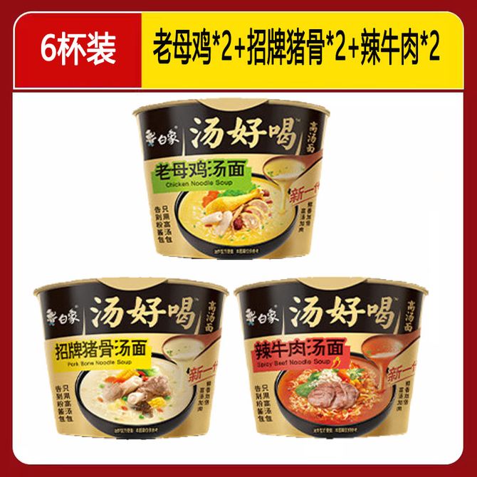 白象 汤好喝方便面 老母鸡109g*2+招牌猪骨*2+辣牛肉*2 非整箱6 桶便携装 非油炸面饼 速食早餐夜宵即食 白象 汤好喝方便面 老母鸡109g*2+招牌猪骨*2+辣牛肉*2 非整箱6 桶便携装 非油炸面饼 速食早餐夜宵即食 兑换价格 1200 里程 会员卡别 终身白金卡 白金卡 金卡 银卡 普通卡 儿童卡 服务 由 繁星尚品 发货并提供售后 规格: 组合 购买数量: 件 库存件 配送地址: 立即购买 加入购物车 成功添加到购物车 关闭 购物车共有 种商品 总金额为: 组合销售 产品介绍 产品规格 售后服务 产品咨询 发现好货 康师傅 经典红烧牛肉面五连包104g*5袋泡面袋装方便面 1100 里程 锋味派 火山石烤肠 纯肉香肠 台湾脆皮热狗肠 烧烤空炸食材 【单盒装】原味黑猪肉 400g 3000 里程 白象 大辣娇 韩式火鸡面10袋 1300 里程 白象方便面经典老坛酸菜牛肉119g*12桶泡面整箱装 1700 里程 海天 黄豆酱800g*2(调味酱 甜面酱 拌饭拌面炒菜酱 酱料调料) 1300 里程
