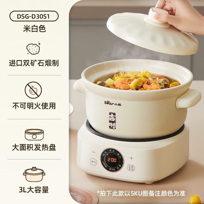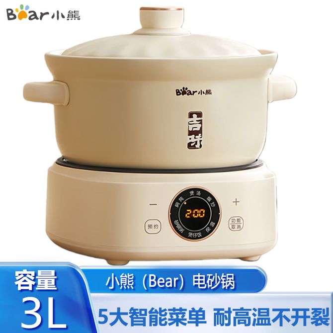 小熊/Bear 电炖锅3L 电砂锅家用炖肉煲汤煮粥锅双矿石锅身耐高温不开裂 分体式电砂锅 3L黄金容量 5大智能菜单 优选双矿石 耐高温不开裂 360°循环速热盘 分体式锅体 兑换价格 13000 里程 会员卡别 终身白金卡 白金卡 金卡 银卡 普通卡 儿童卡 商品已下架 1. 请联系卖家咨询 2. 逛逛中农创家电生活馆选择其他商品 组合销售 产品介绍 产品规格 售后服务 产品咨询 发现好货 小熊/Bear 电炖锅1-2人小炖锅煮粥锅智能预约定时煲汤锅炖汤锅燕窝炖盅 4400 里程 苏泊尔(SUPOR) 电火锅家用不粘煎涮炖煮多功能4L大容量一体式大火力电煮锅不粘煎涮炖煮多功能料理锅 H40YK757 5700 里程 西屋/Westinghouse 多功能电煮锅电炖锅1.6L一锅多能WFB16A 11600 里程 苏泊尔(SUPOR) 电火锅 宿舍小电锅学生寝室一体泡面小火锅 多功能锅涮肉涮菜 1.7L 【 单锅】H17YK489 3000 里程 小熊(Bear)电炖锅电炖盅煮粥神器煲汤锅炖汤锅婴儿煮粥锅熬粥燕窝炖盅DDG-E15K2 4800 里程