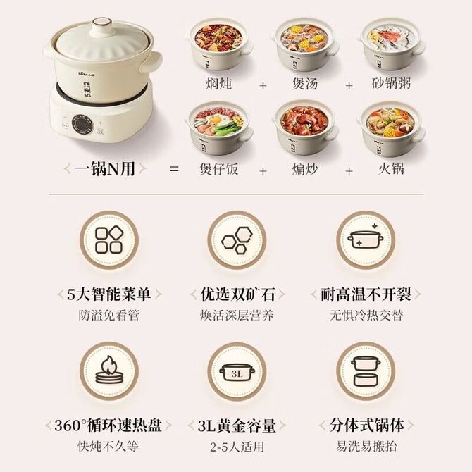 组合销售 产品介绍 产品规格 售后服务 产品咨询 发现好货 小熊/Bear 电炖锅1-2人小炖锅煮粥锅智能预约定时煲汤锅炖汤锅燕窝炖盅 4400 里程 苏泊尔(SUPOR) 电火锅家用不粘煎涮炖煮多功能4L大容量一体式大火力电煮锅不粘煎涮炖煮多功能料理锅 H40YK757 5700 里程 西屋/Westinghouse 多功能电煮锅电炖锅1.6L一锅多能WFB16A 11600 里程 苏泊尔(SUPOR) 电火锅 宿舍小电锅学生寝室一体泡面小火锅 多功能锅涮肉涮菜 1.7L 【 单锅】H17YK489 3000 里程 小熊(Bear)电炖锅电炖盅煮粥神器煲汤锅炖汤锅婴儿煮粥锅熬粥燕窝炖盅DDG-E15K2 4800 里程