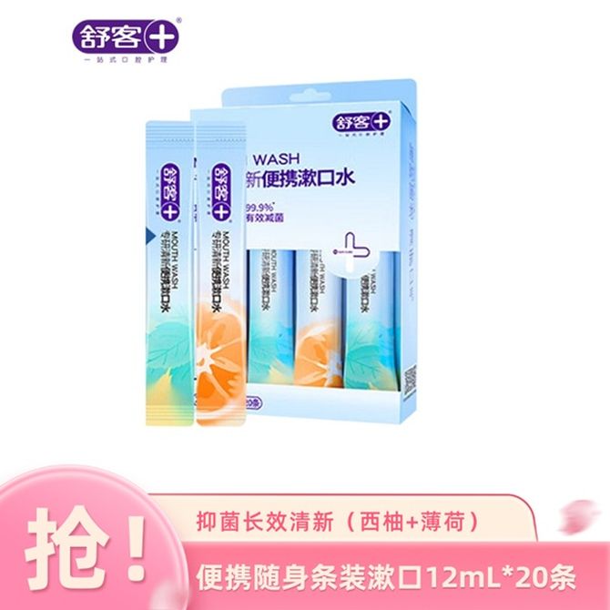 舒客 便携随身条装漱口水99%抑菌长效清新(西柚+薄荷)12mL*20条 改善口气 减菌源头 兑换价格 1600 里程 会员卡别 终身白金卡 白金卡 金卡 银卡 普通卡 儿童卡 服务 由 视通无限个护化妆专营店 发货并提供售后 化妆品容量: 组合 购买数量: 件 库存件 配送地址: 立即购买 加入购物车 成功添加到购物车 关闭 购物车共有 种商品 总金额为: 组合销售 产品介绍 产品规格 售后服务 产品咨询 发现好货 舒客 沁爽清新漱口水(茶爽新)500mL*2大瓶 去口臭温和不辣口无醇涑口液口味含氟 1600 里程 高露洁(GOLGATE)漱口水500ml*2瓶茉莉绿茶味 2400 里程 高露洁(Colgate)漱口水250ml*2瓶元气薄荷味 1700 里程 高露洁(Colgate)贝齿鲜果薄荷漱口水500ml×3(新老包装随机发货) 3400 里程 海氏海诺 漱口水型 薄荷口腔清新剂口臭清洁抑菌液 无酒精 500ml/瓶 1200 里程
