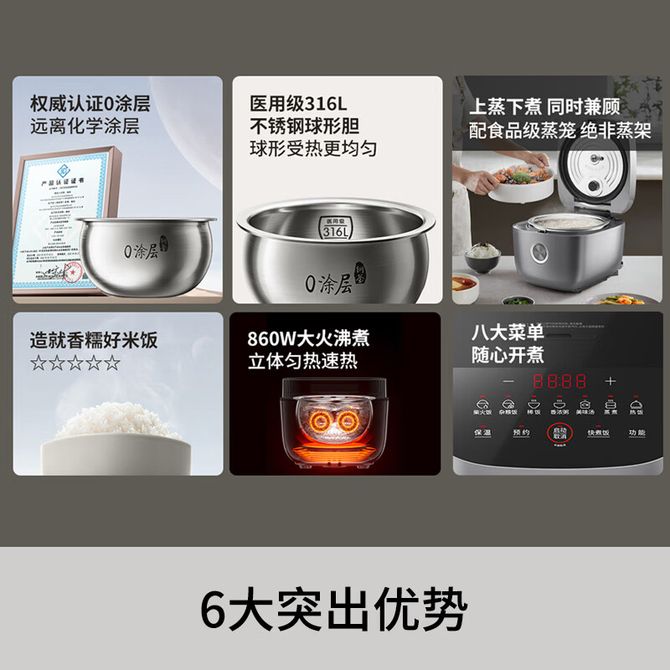 九阳/Joyoung 电饭煲F-40F316L电饭锅0涂层316L不锈钢家用4-5个人智能预约无涂层不粘锅球形内胆耐用多功能微压锅 4L 【316L内胆】 兑换价格 17400 里程 会员卡别 终身白金卡 白金卡 金卡 银卡 普通卡 儿童卡 服务 由 纳华优选 发货并提供售后 颜色: 深灰色 购买数量: 件 库存件 配送地址: 立即购买 加入购物车 成功添加到购物车 关闭 购物车共有 种商品 总金额为: