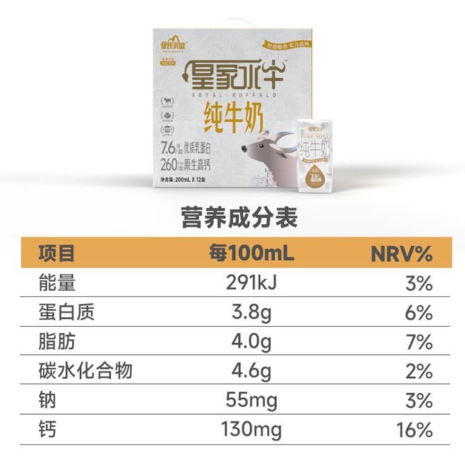 皇氏乳业 皇家水牛纯牛奶儿童成人奶200MLx12盒钻石包 新老包装随机发货 兑换价格 2000 里程 会员卡别 终身白金卡 白金卡 金卡 银卡 普通卡 儿童卡 服务 由 恒业优品 发货并提供售后 规格: 礼盒 购买数量: 件 库存件 配送地址: 立即购买 加入购物车 成功添加到购物车 关闭 购物车共有 种商品 总金额为: 组合销售 产品介绍 产品规格 售后服务 产品咨询 发现好货 蒙牛 特仑苏纯牛奶苗条装250ml×12盒 2900 里程 三元 经典小方白全脂纯牛奶250ml*24盒牛奶 整箱 3400 里程 伊利金典纯牛奶250ml*12盒整箱 2200 里程 伊利 金典纯牛奶整箱 250ml*12盒 3.6g乳蛋白 原生高钙 礼盒装 1800 里程 特仑苏 新日期纯牛奶250ml*12盒 3.6g乳蛋白 礼盒装 京东/顺丰发货 2400 里程